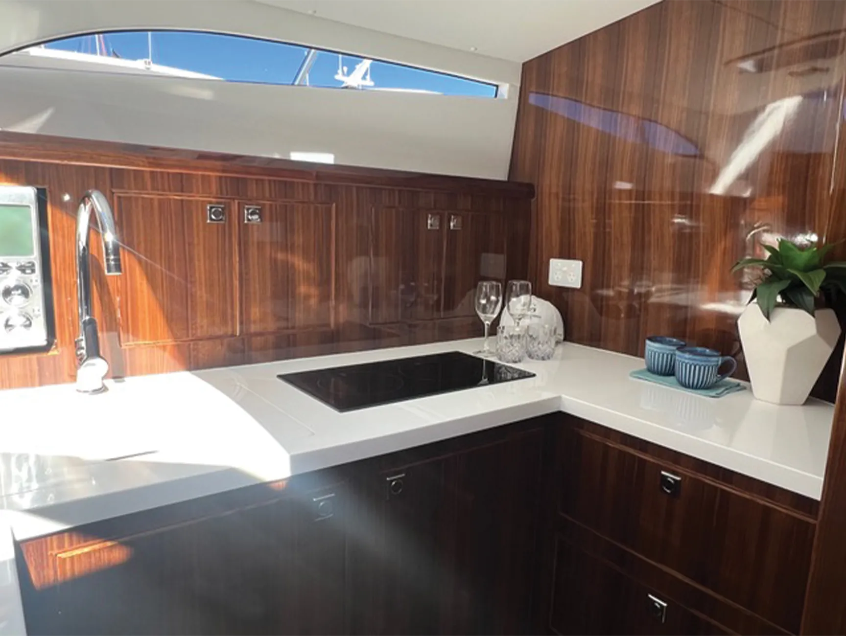 This beautifully appointed 42 Twin Engine boat has just landed and is turning heads. Stylishly presented with gleaming timber cabinetry, a spacious saloon, and two inviting cabins, it’s the perfect blend of comfort and capability.